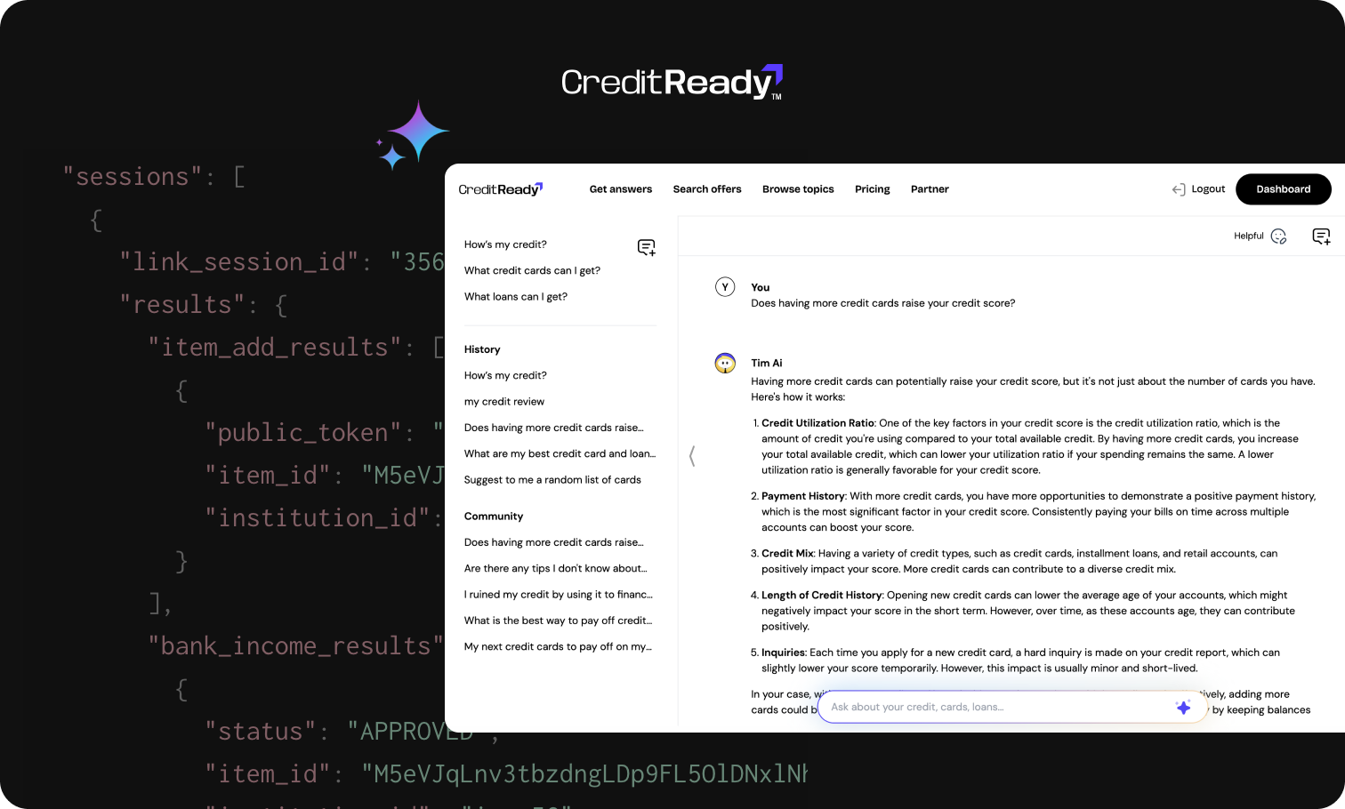Be the smart friend by offering an unbiased, hyper-personalized AI credit companion to your customers.