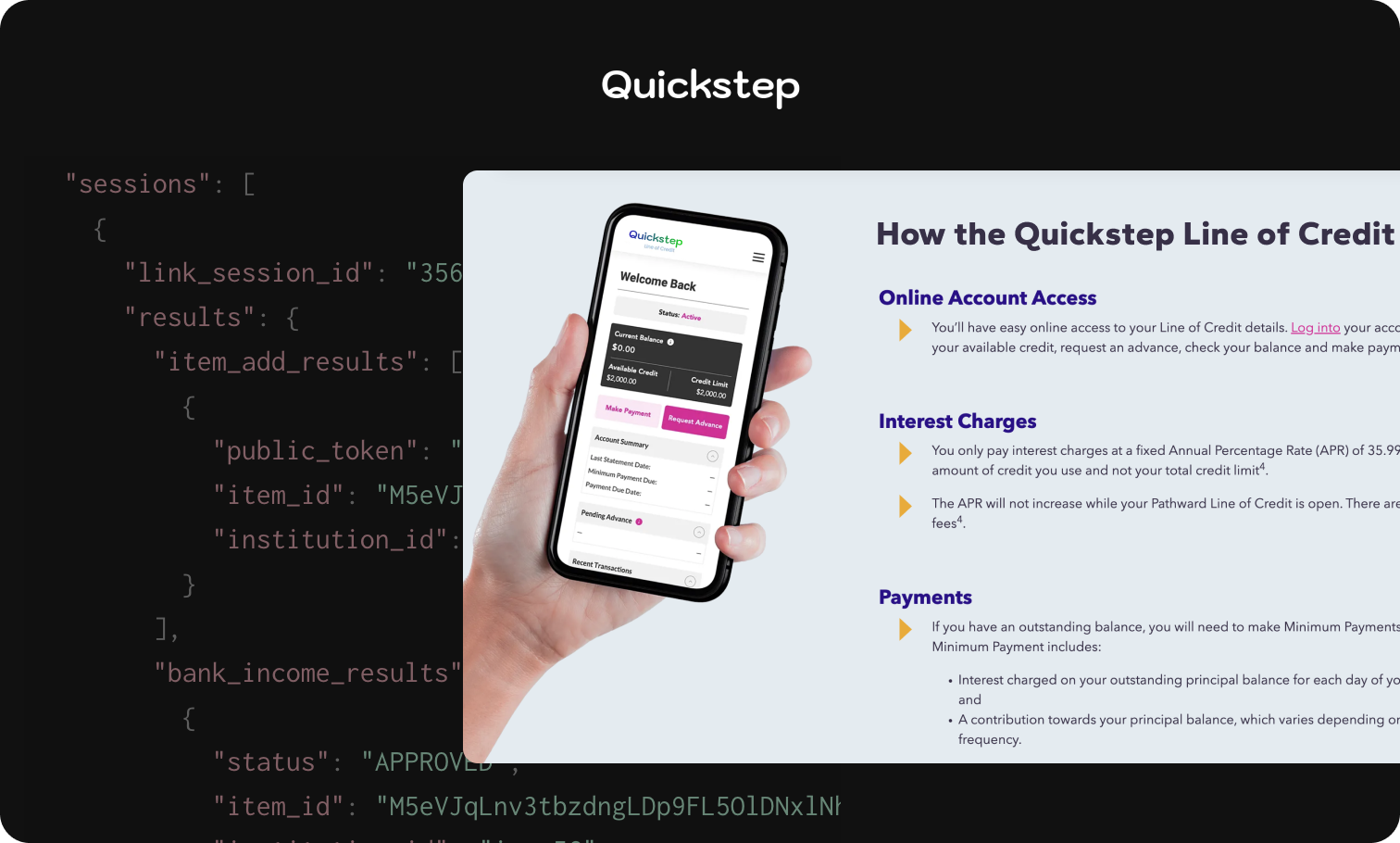 Trutopia’s lending APIs support our Line of Credit product, Quickstep LOC, hosted underwriting models, and IPP lending functions as a service.